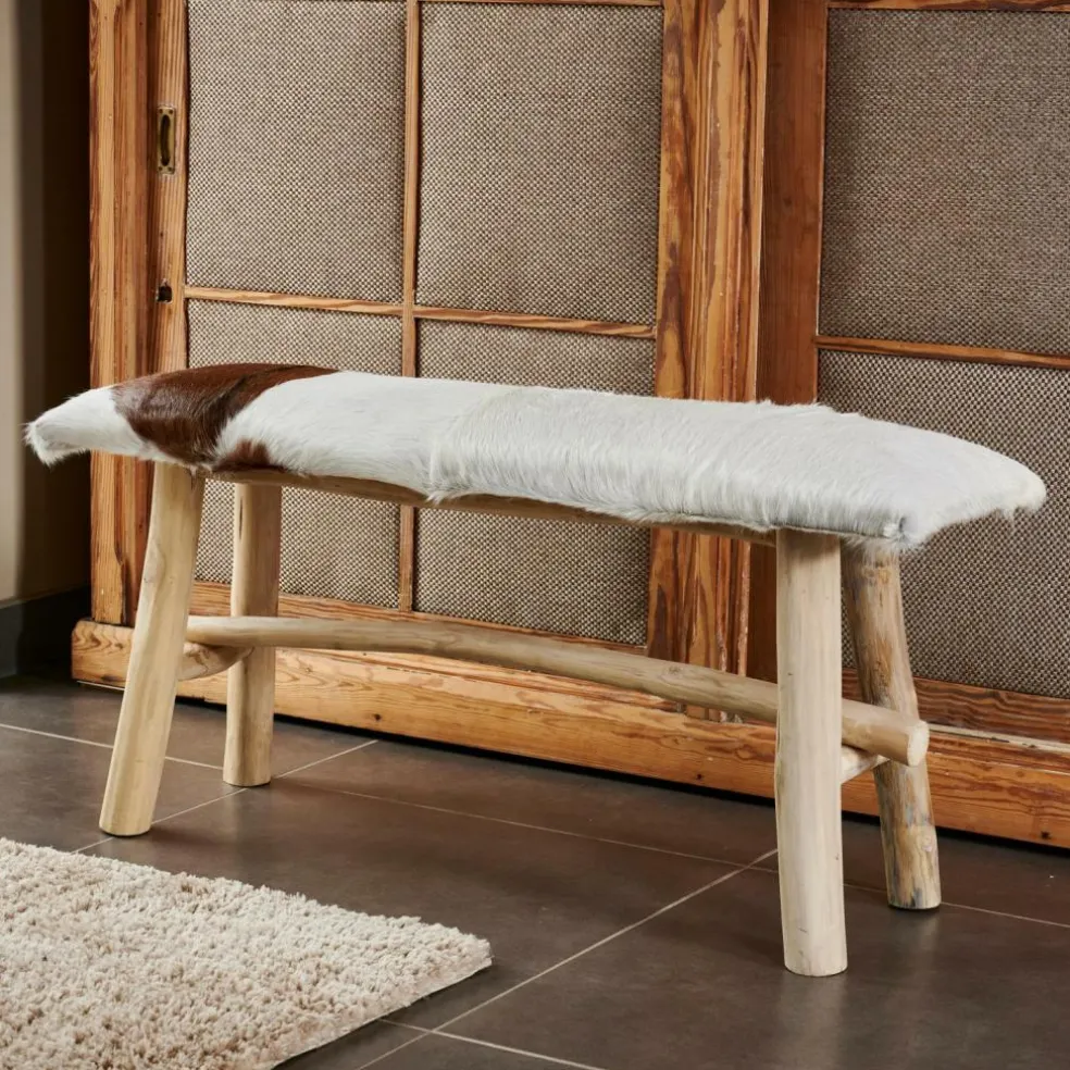 - Assise : acajou – Mahonia (Indonésie), Finition: cuir de chèvre, Pieds : teck (Indonésie)